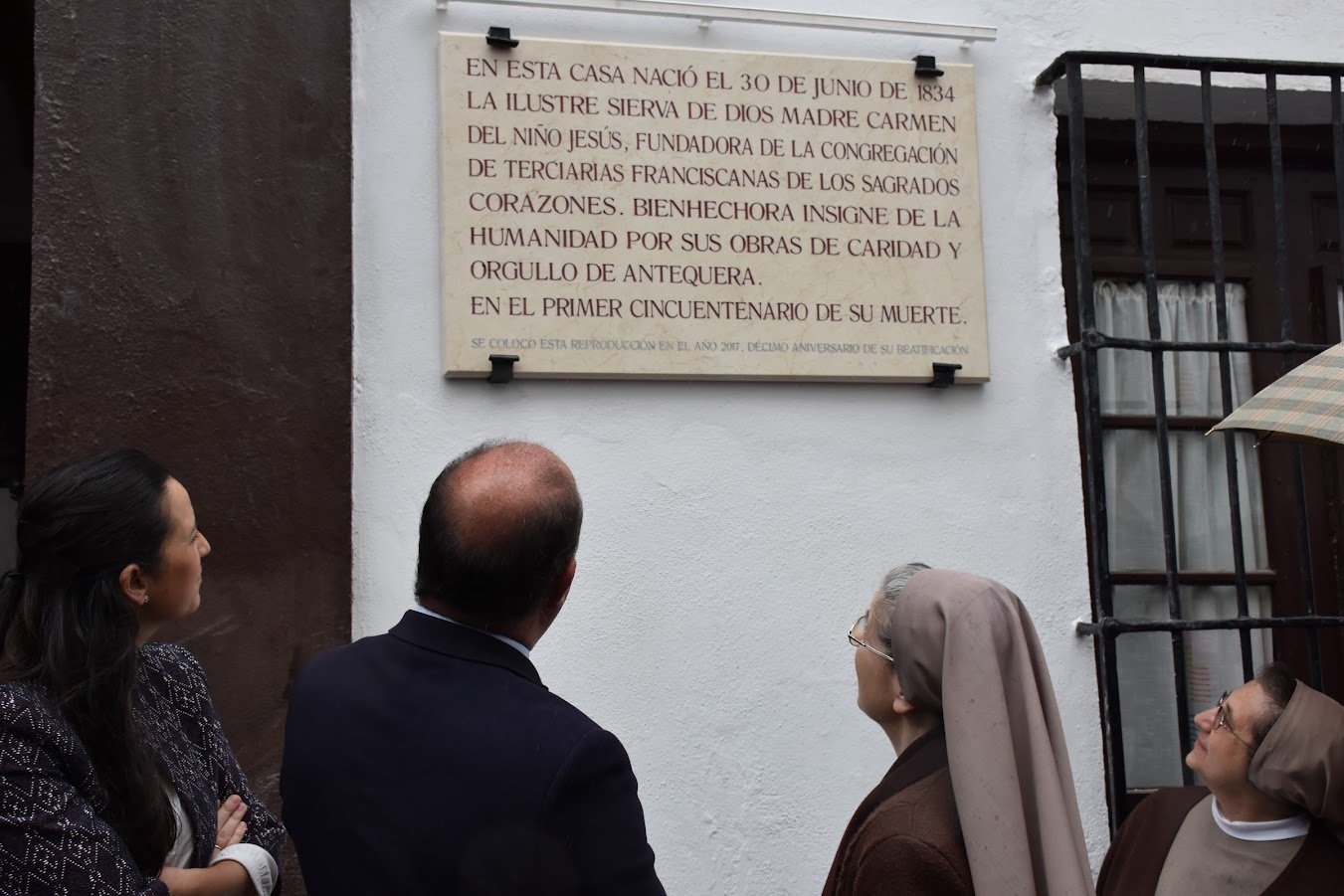 "Renovada la placa que recuerda el nacimiento de la beata Madre Carmen de Antequera..."